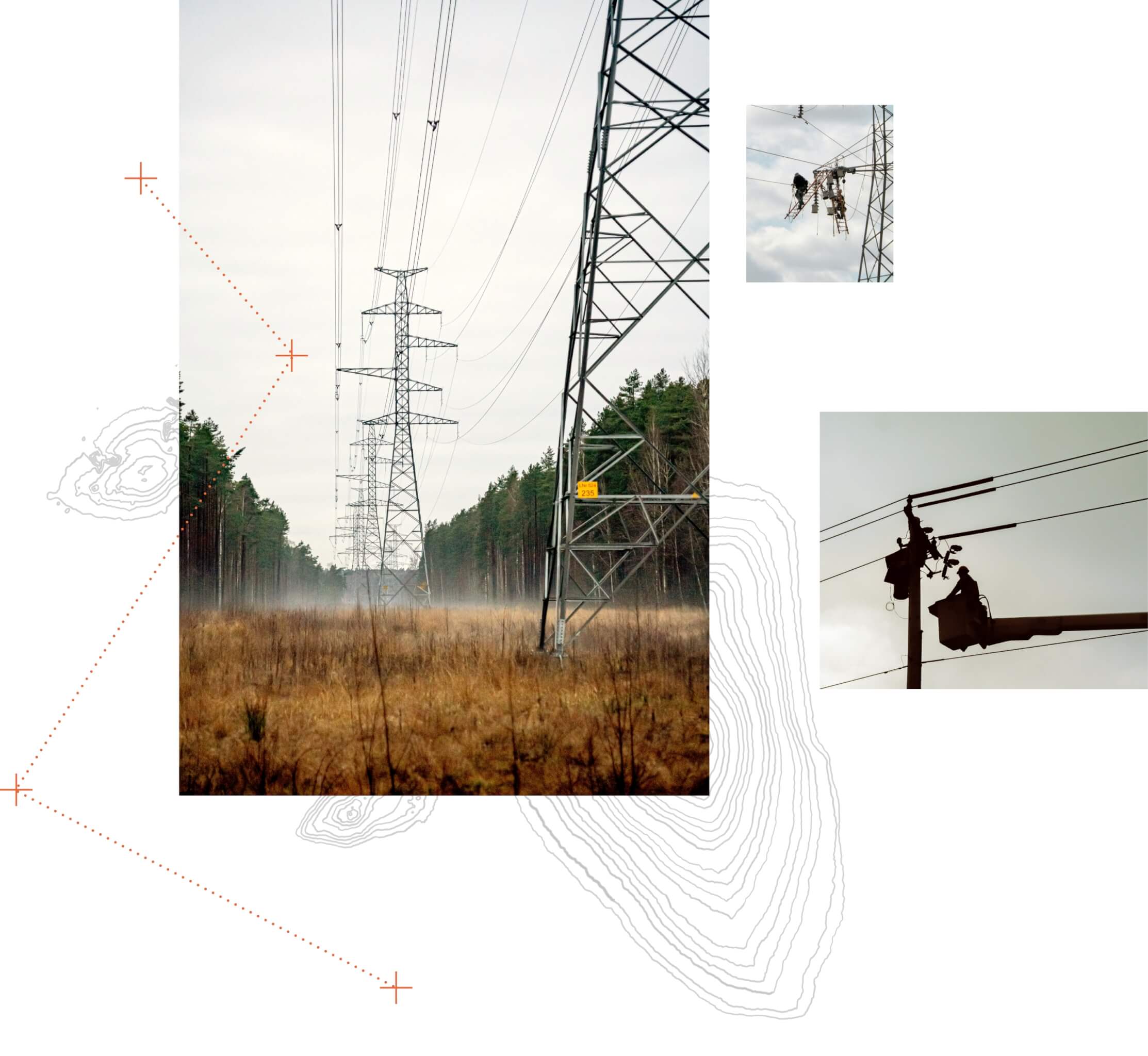 Vykonávame montáž a demontáž vysokého a veľmi vysokého napätia. Pri vysokom napätí montujeme a demontujeme transformátorové stanice, distribuujeme vonkajšie vzdušné a káblové elektrické vedenia a vysokonapäťové prípojky. V oblasti práce na veľmi vysokom napätí ide o montáž a demontáž priehradových stožiarov a ich betónových základov.